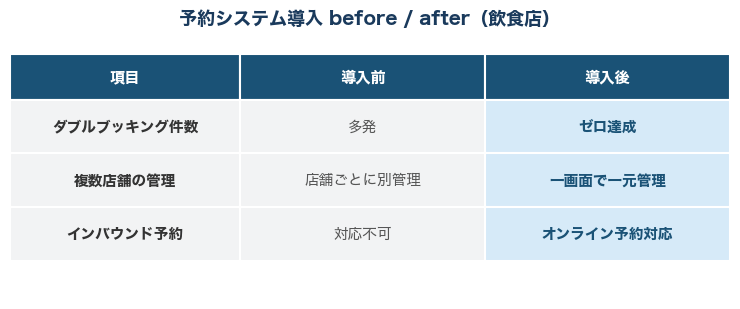 福岡県・飲食店席種別予約管理・電話予約簡易入力ダブルブッキングゼロ達成