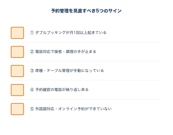 飲食店の予約管理システムを見直すべき5つのサイン|ダブルブッキング・電話対応の解決策